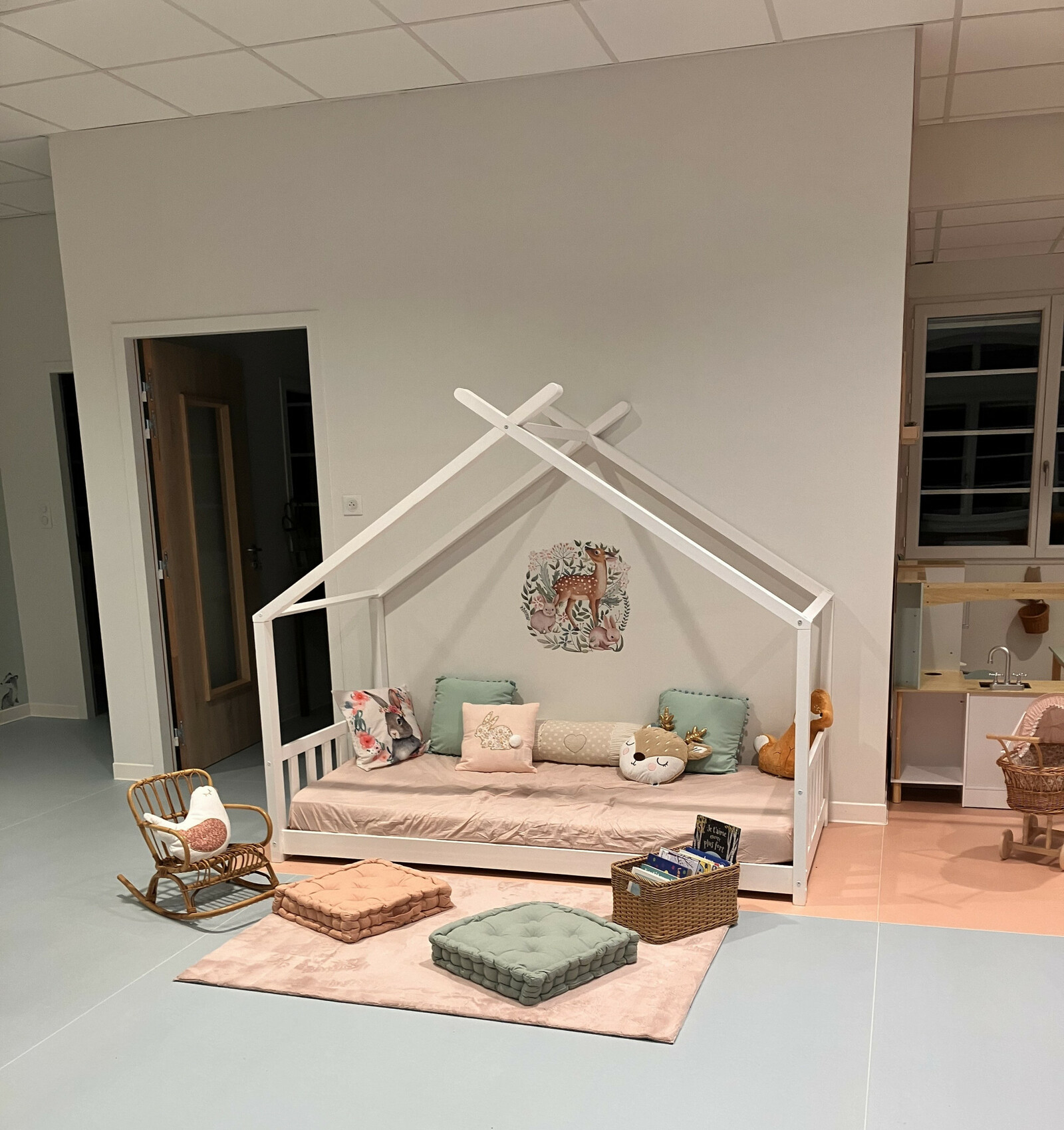 Nous sommes épanouies de travailler dans un si beau local de 110m² que nous avons décoré et agencé avec soin afin que les enfants évoluent dans un espace agréable et relaxant.